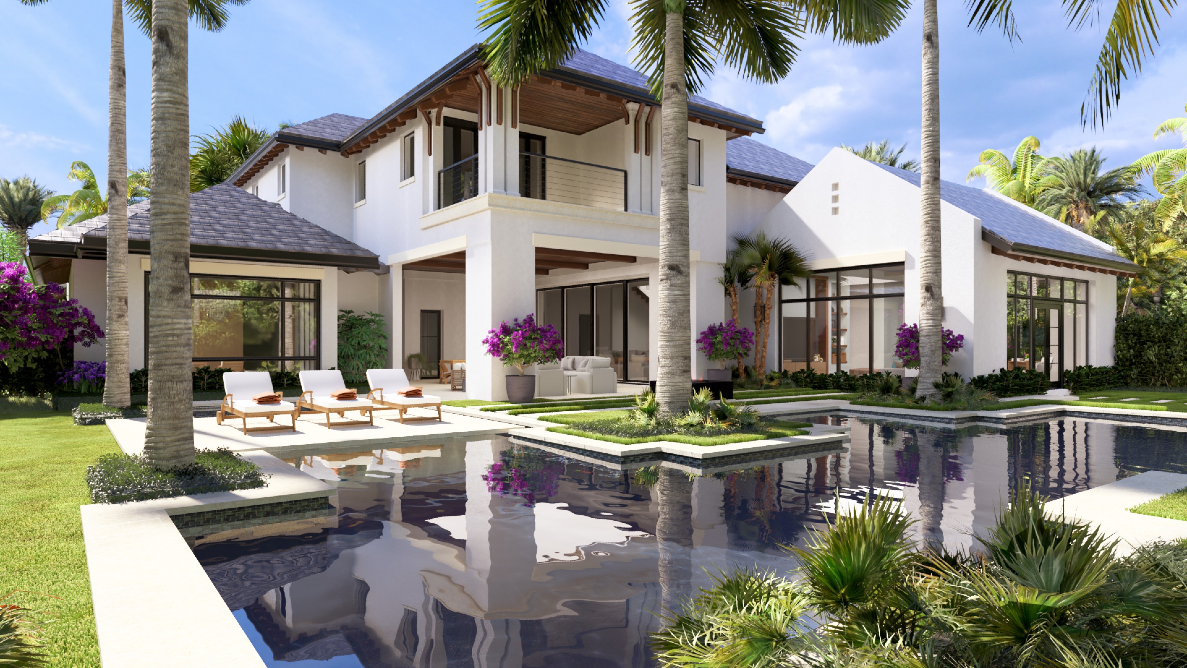 Visualization project exploring different angles and finishes of a beach oasis concept.